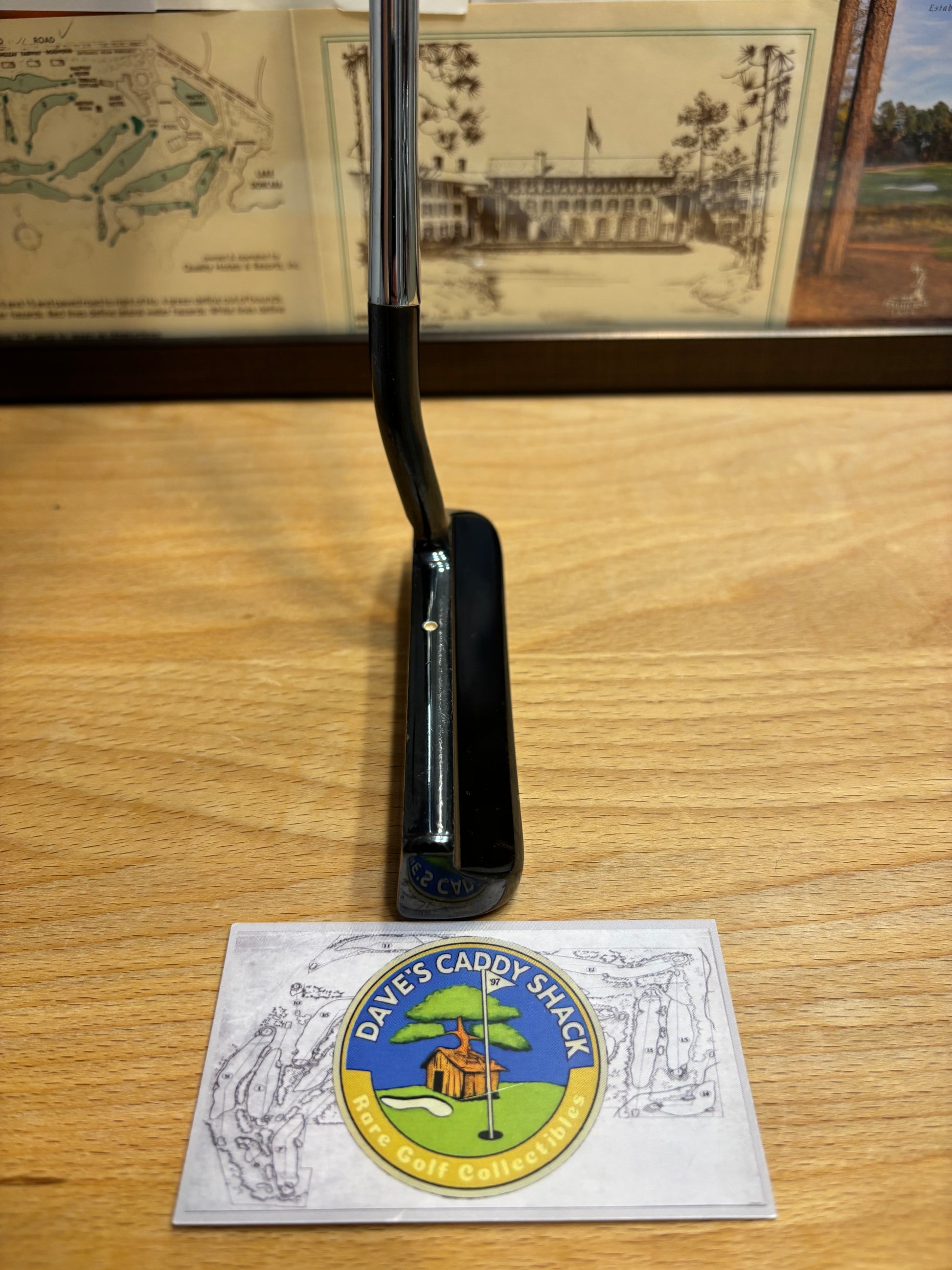 "The Studio Design 1 is a classic form with a heritage that dates back to Scotty’s garage, where each putter was individually made by him, by hand. Milled from a solid block of carbon steel for solid feel and precise tolerance, the Studio 1 features a soft flanged blade, flowing neck, high toe and dancing letters that evoke timeless designs. In-studio research has shown that many players drop their hands to raise the toe of the putter for proper alignment, conversely changing the angle of impact. The high toe of the Model 1 ensures proper alignment by maintaining a consistent lie angle. This combines with negative bounce so the putter never sits closed, perfect balance, a shiny gun blue finish and a specially designed paddle grip that compliments the look, to produce a putter of exquisite refinement."
