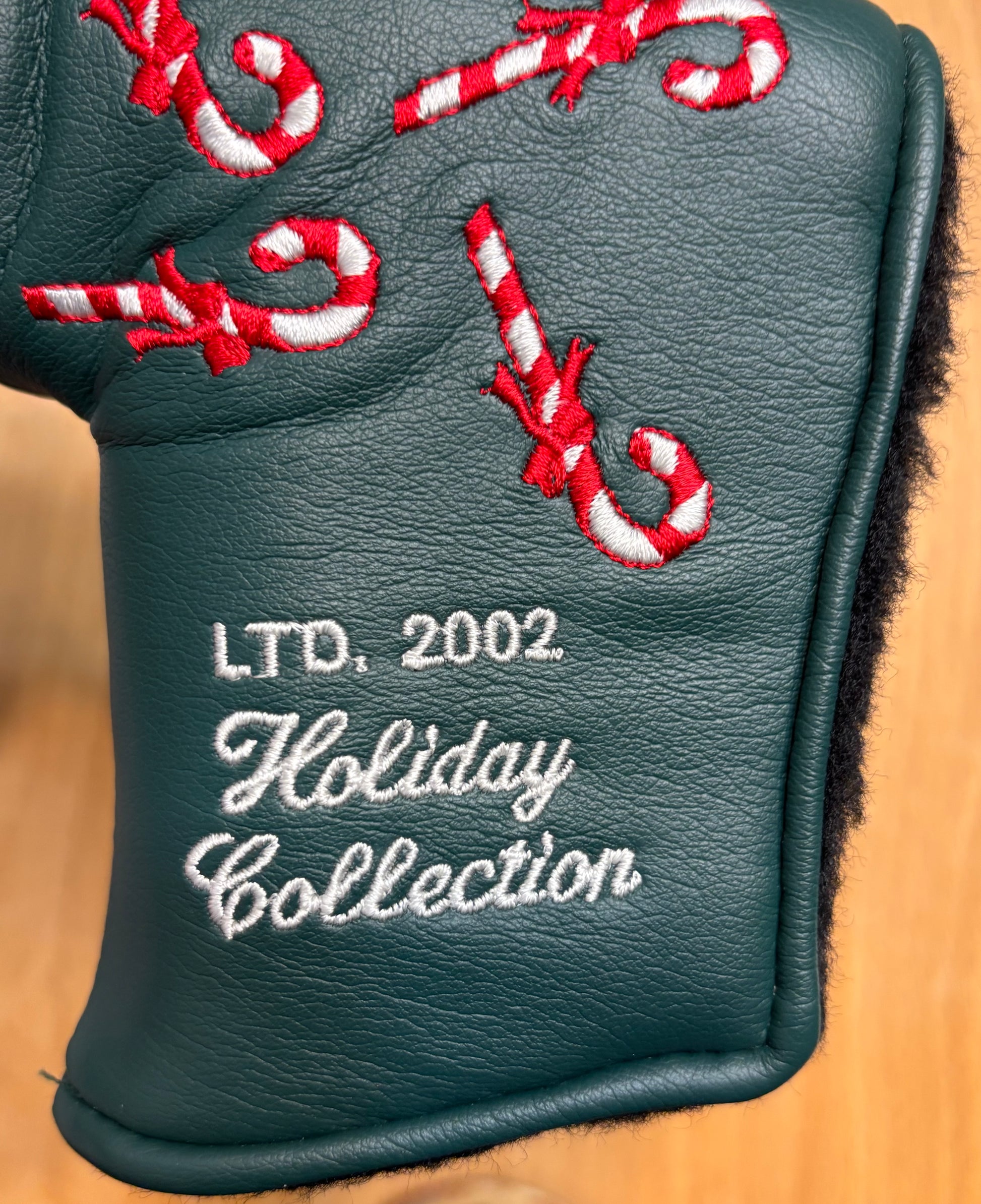 Offered only on the 2002 Holiday Edition putter, this headcover is a sure standout in any collection with its colorful array of dancing candy canes!